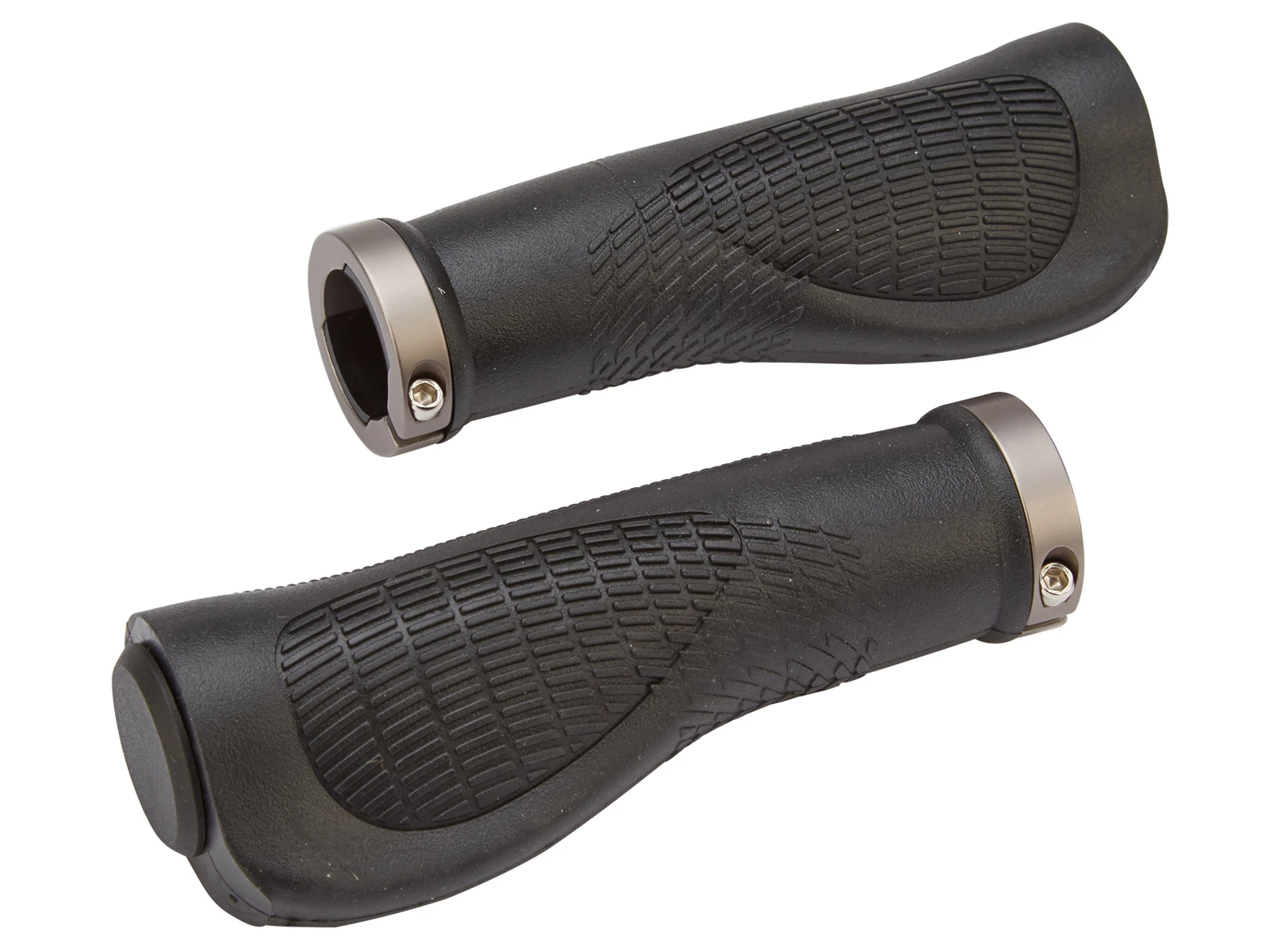 Dessa handtag är uppbyggda runt en plasthylsa, som spänns fast runt styret med en aluminiumkloss och säkrar att handtagen inte snurrar runt på styret. Handtagens ergonomiska utformning ger handen en större vil-yta. Bike Attitude har framställt dessa handtag med små knoppar, som ger ett perfekt grepp. Handtagen är 125 mm långa och har en utvändig diameter på hela 33/45 mm. Handtagen är öppna vid änden på styret.