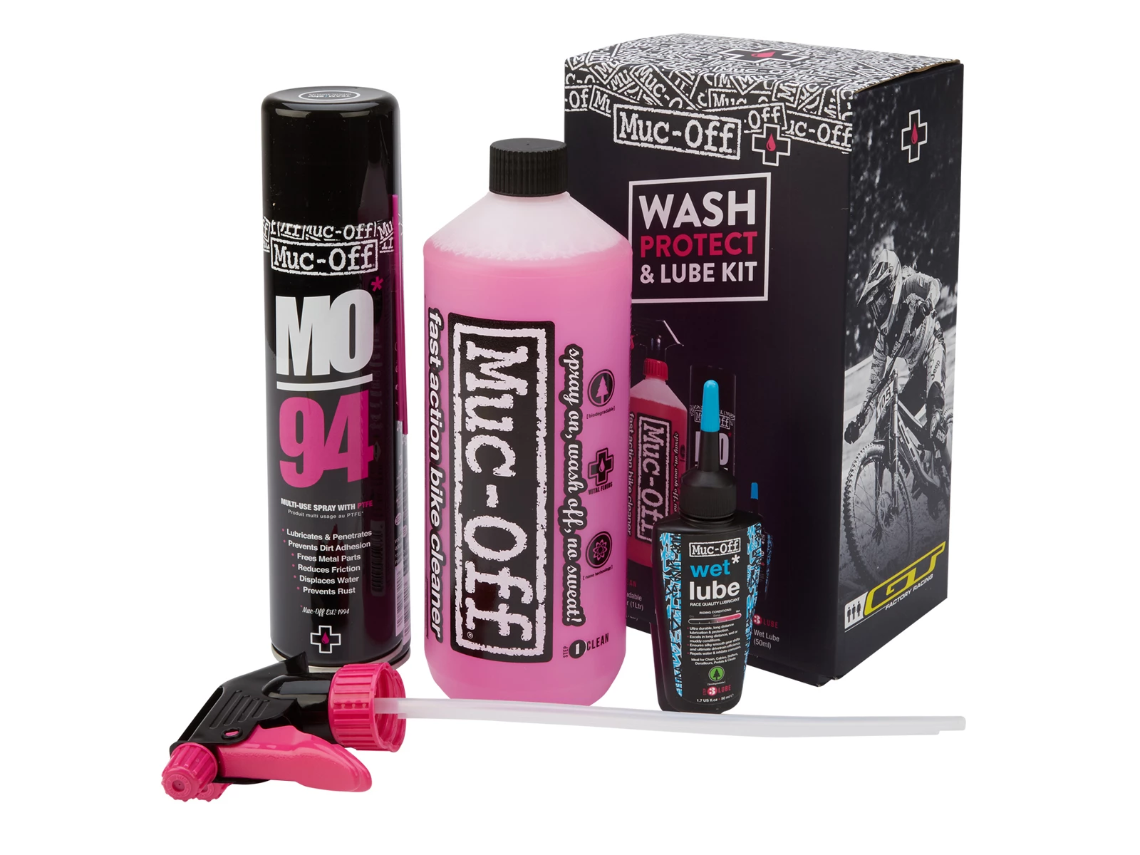 Du får ett underhållsset som kan användas till alla cykeltyper, här kan bland annat nämnas MTB-, cykelcross-, racer- och pendelcyklar. Settet ger dig en Bike Cleaner till att tvätta cykeln med, MO-94 som är en allround mirakelspray som snabbt och effektivt smörjer de rörliga delarna och som efterlämnar ett långvarit skydd, samt en Biodegradable Wet Lube, vilket är ett ultrahållbart smörjmedel som kan användas till kedjan och som ger ett silkesmjukt växelbyte.