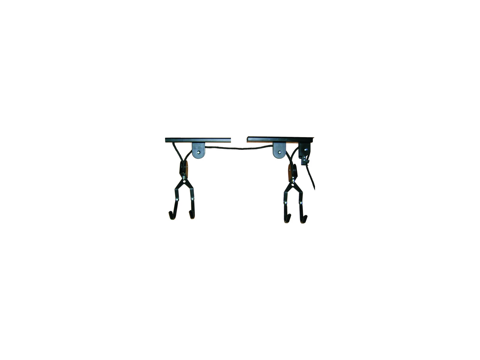 Cykelupphängningen används för att förvara eller reparera cyklar. Med hjälp av dragstången kan du enkelt få din cykel hissad upp och ner, så att den hänger i precis den höjd du behöver. Fjädringen har ett mekaniskt låssystem som gör det möjligt att låsa cykeln på respektive höjd, samtidigt som du t.ex. jobbar på det. För att lossa upphängningens säkring, dra helt enkelt i linan, som släpper låsmekanismen och sänker cykeln.