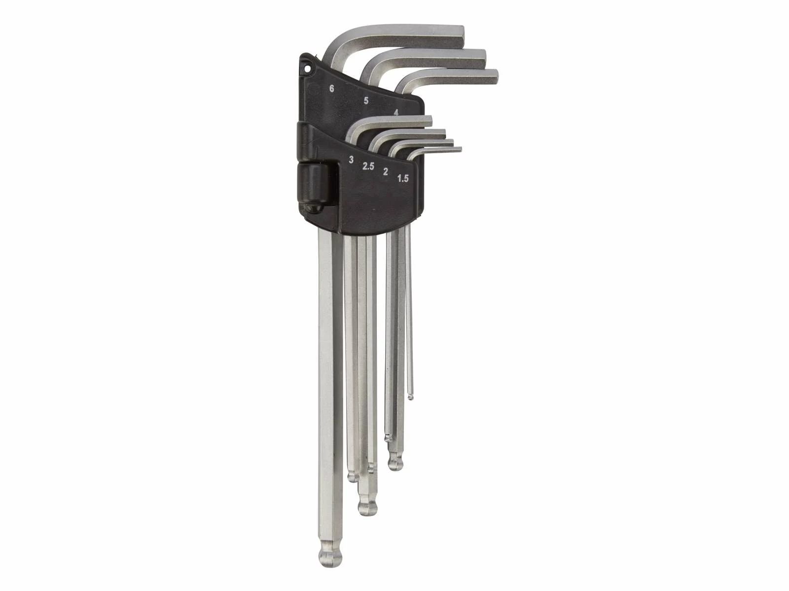- Storlekar på nycklarna: 1,5 – 2 – 2,5 – 3 – 4 – 5 – 6 mm