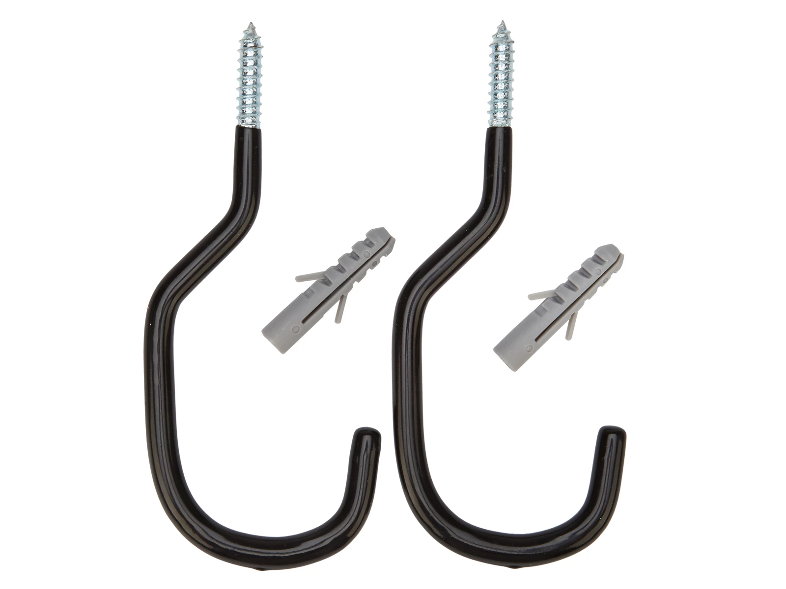 Praktiska takkrokar för att hänga upp cykeln i fram- eller bakhjulet. Kan skruvas direkt i tak eller vägg. Rawplugs ingår.