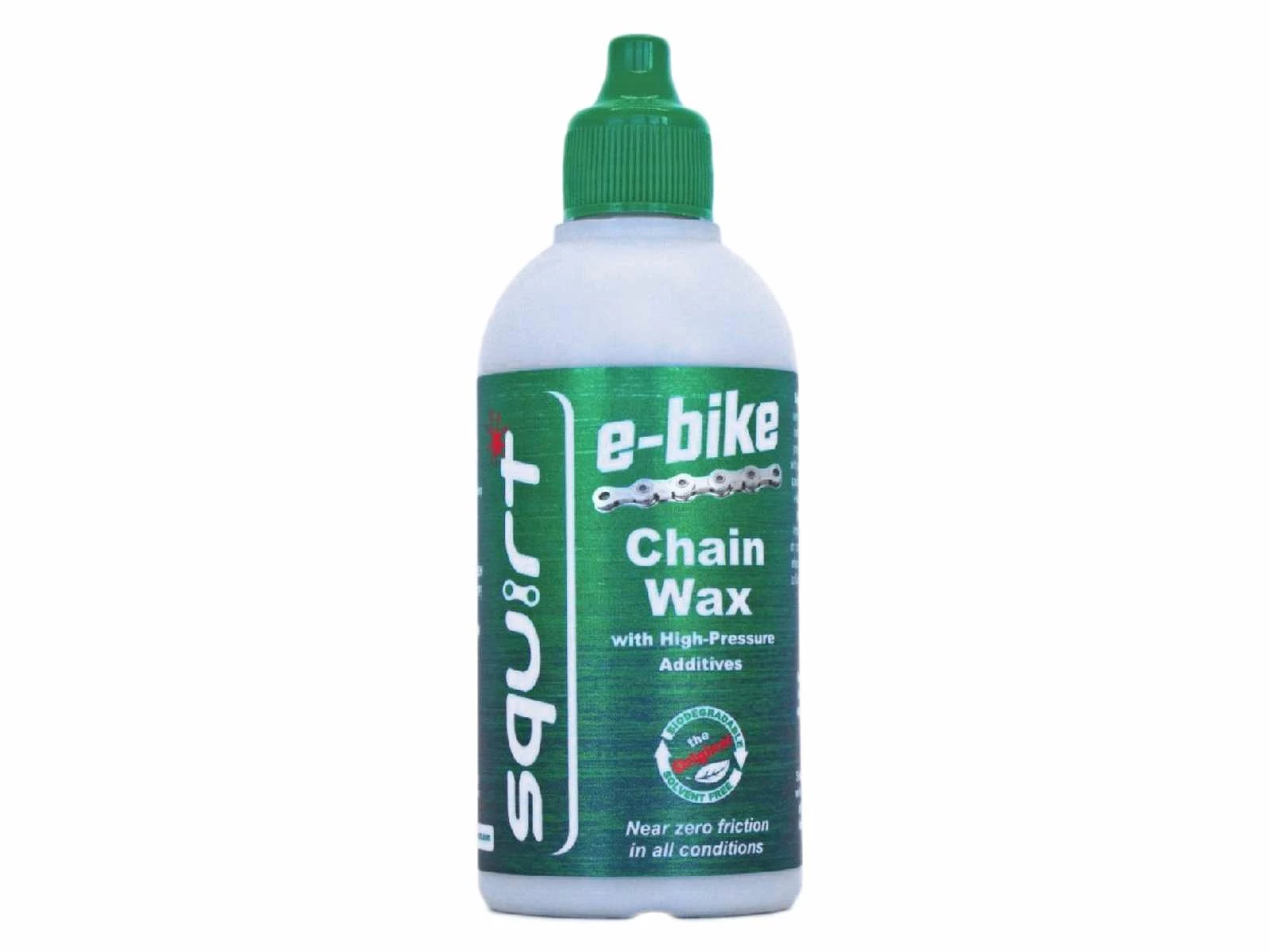 Squirt ‘E-bike Chain Wax’ är ett vaxbaserat smörjmedel, som är speciellt utvecklat för användning på elcyklar, där transmissionen belastas mycket hårdare än på en vanlig cykel. – Men kvalitetsmässigt är den här utgåvan precis lika bra som den välkända ‘Squirt Chain Lube’.