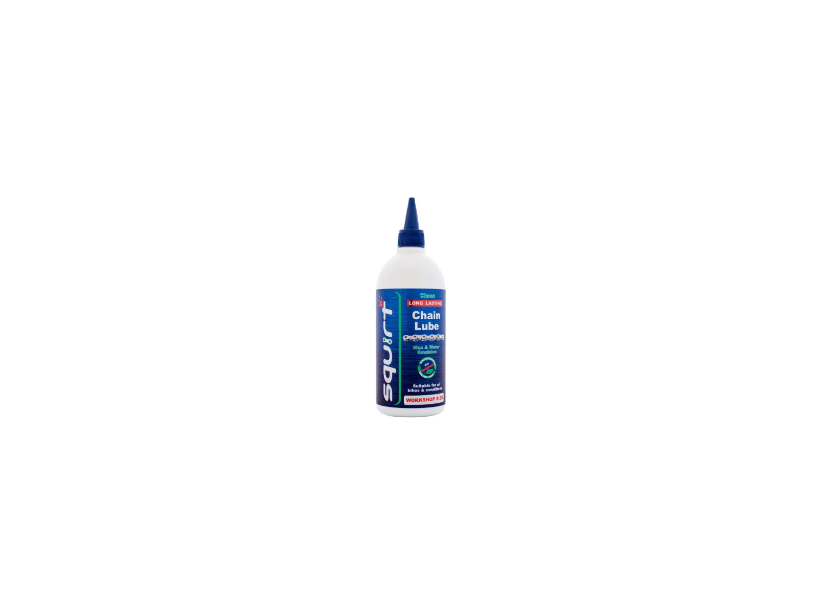 Här får du Squirt’s vatten- och vaxbaserade Squirt Lube i en stor 500 ml droppflaska så att du inte blir slut. Vaxinnehållet i detta smörjmedel är dubbelt så stort som de flesta konkurrerande märken. Vattnet i produkten avdunstar efter applicering och lämnar en välsmord kedja utan en irriterande våt yta som lockar till smuts. Smörjmedlet är luktfritt och bekvämt att arbeta med. Det är också 100% biologiskt nedbrytbart och redan efter 28 dagar är 80% av det nedbrutet i naturen.