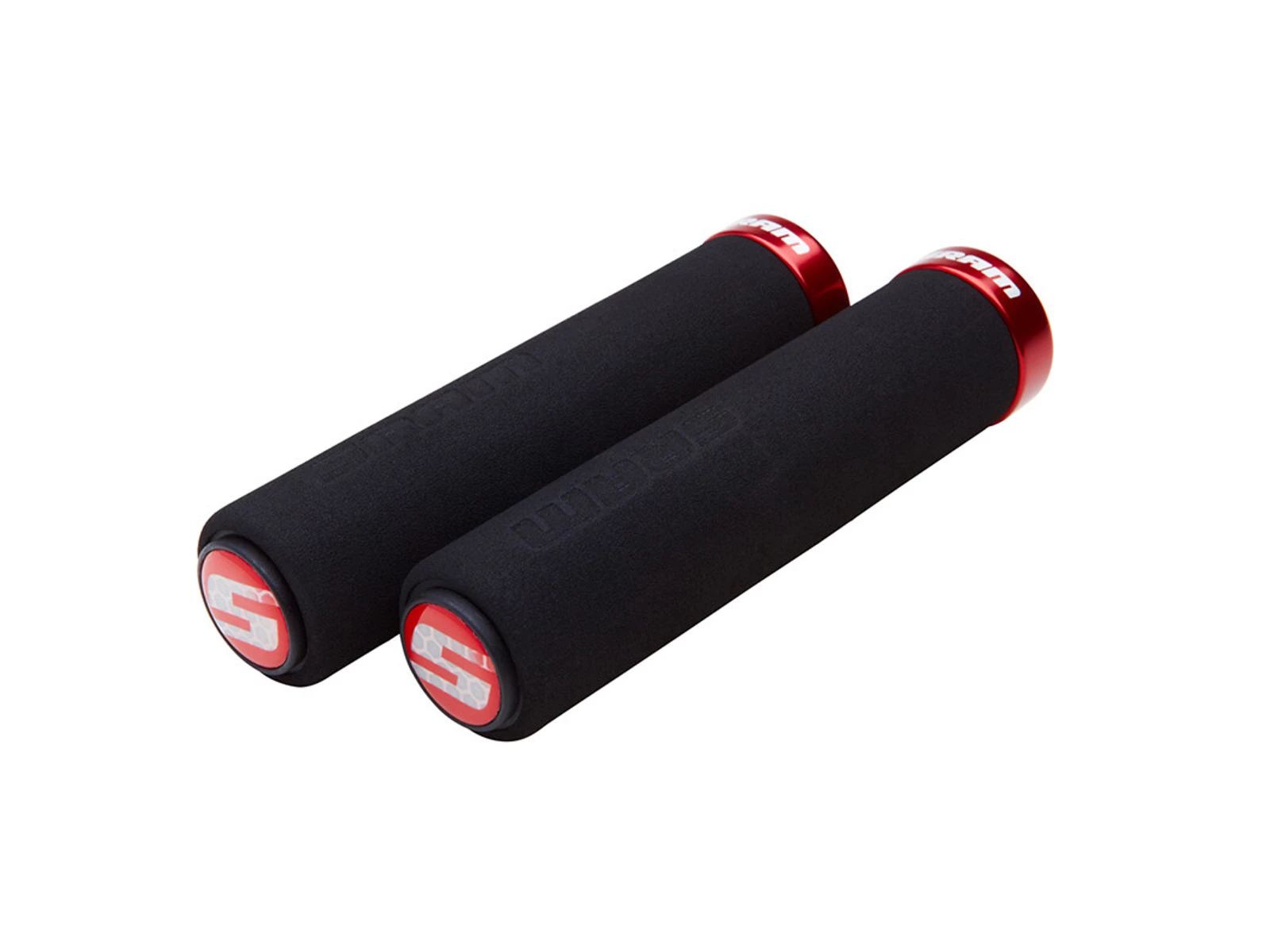 Dessa handtag har en låsklämma på insidan, vilket säkerställer att handtagen sitter fast ordentligt på styret. Det finns 2 pluggar som medföljer för styrändarna. Handtagen passar styrtjockleken på 22,2 mm och har en bredd på 129 mm. Ytan är gjord av skummaterial.