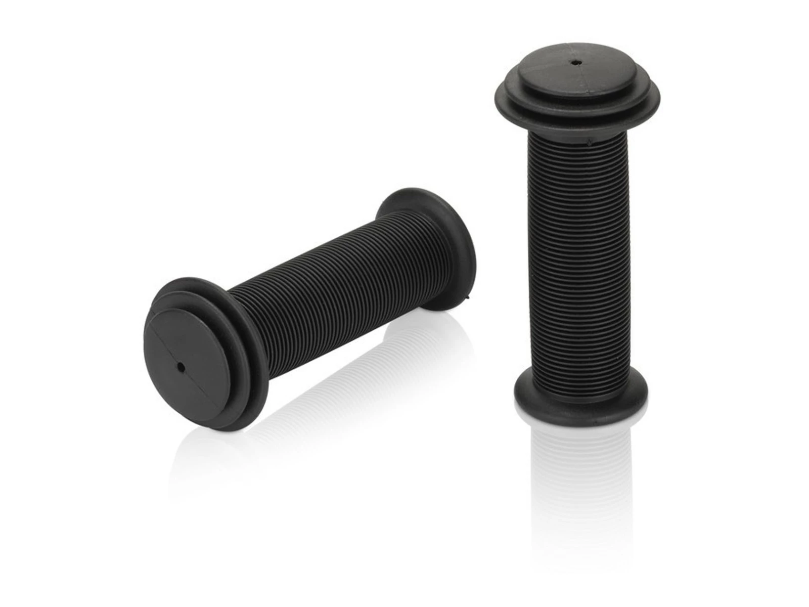 Dessa handtag är från XLC och är tillverkade i ett mjukt, gummiliknande material, som har både stötskyddande samt antiglid-effekt, som gör att barnets händer inte glider av styret. Den ribbade strukturen gör dessutom att barnet får en stötabsorberande effekt, när det hör i ojämn terräng.